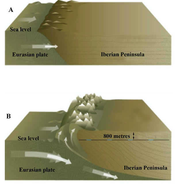 Figure 3.2. Simplified scheme showing the rise of the Iberian Meseta by tectonics.