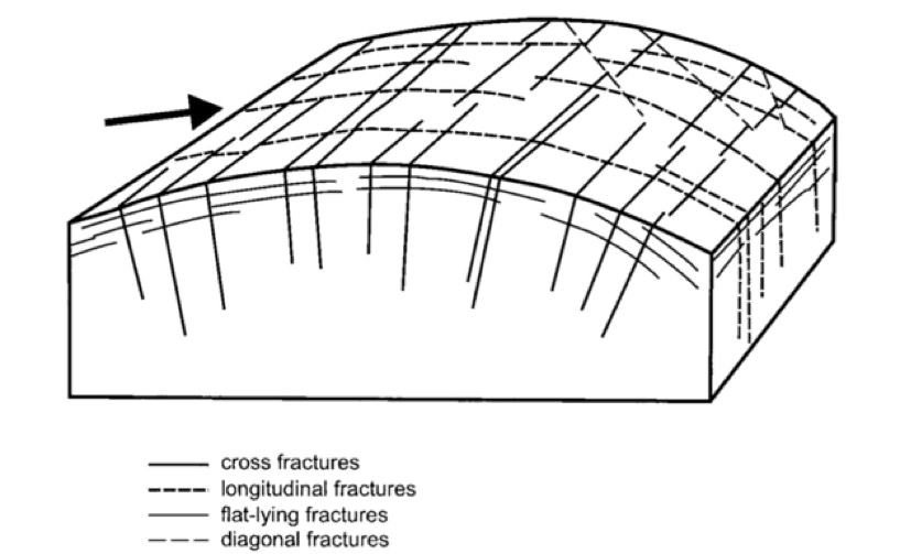 Figure 4.8. Scheme representing fractures in granite rocks (Migon, 2006, Granite Landscapes of the World, Oxford University Press).