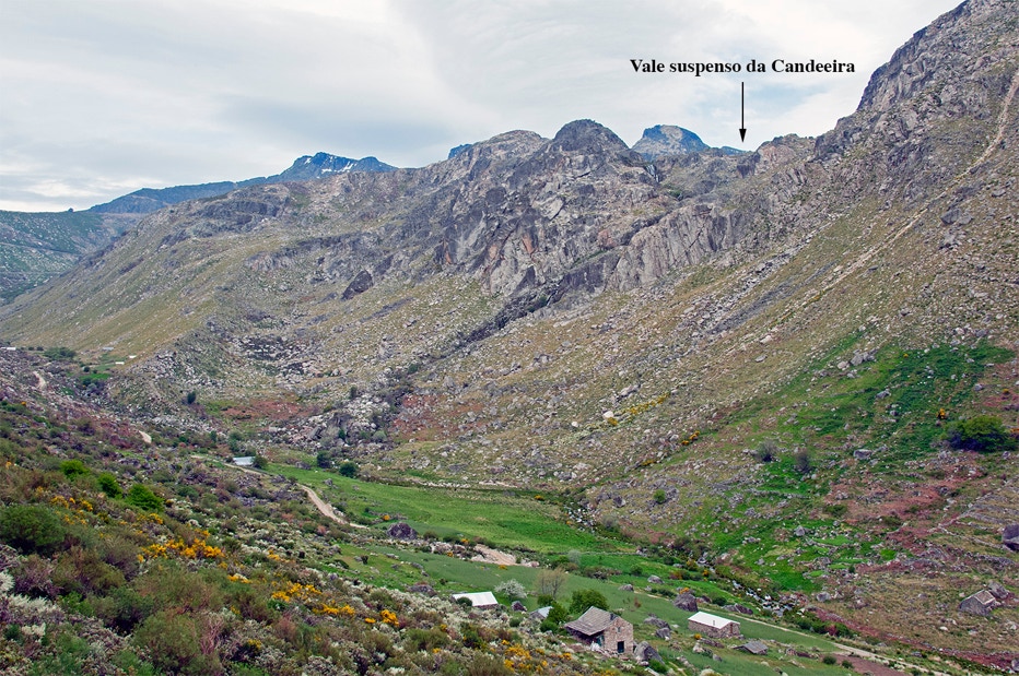 Figura 2.4. Queda de água na confluência do vale suspenso da Candeeira sobre o vale glaciário do Zêzere.