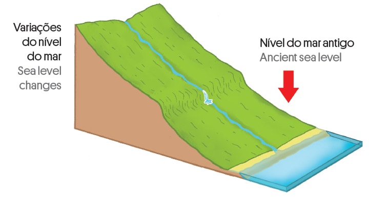 Figura 2.7. Formação de queda de água devido à descida do nível do mar.