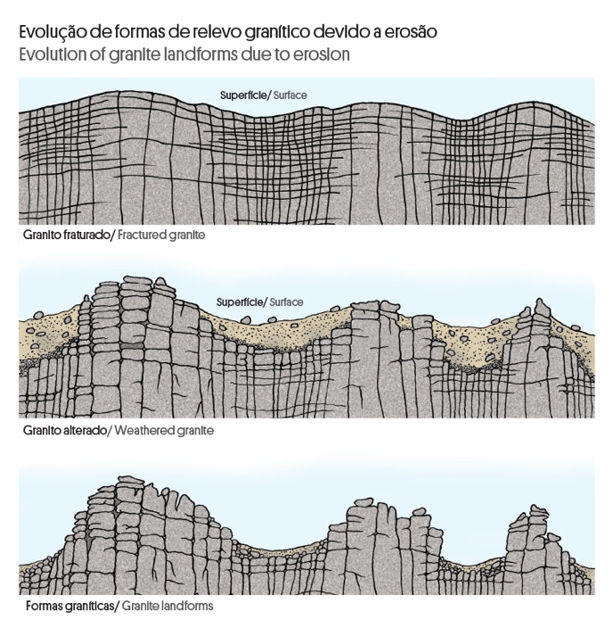 Figura 3.3. Evolução de formas de relevo granítico devido a erosão.