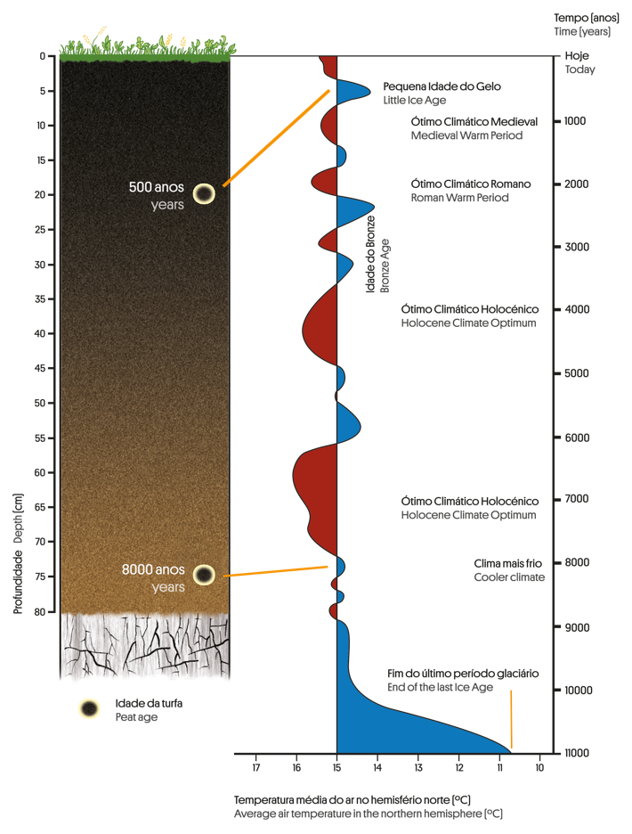 Datações em minerais e a análise de pólenes conservados na turfa da Chã Grande forneceram informações sobre a evolução do clima do Noroeste Ibérico durante parte significativa da época geológica em que vivemos: o Holocénico (últimos 11.700 anos) (Fig. 3.10).