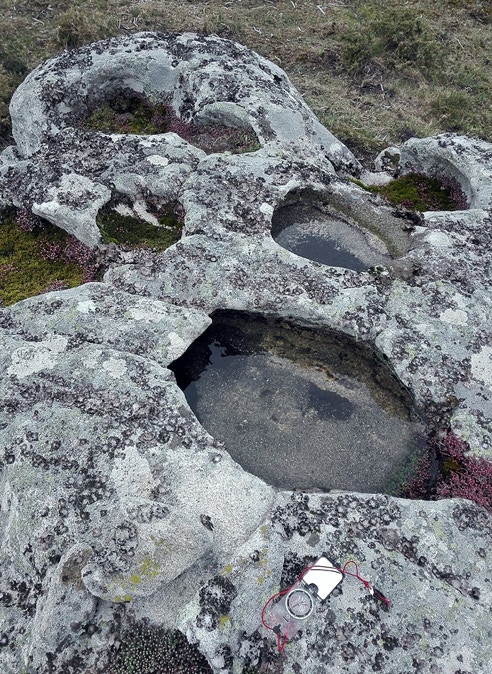 As pias são muito comuns na paisagem granítica do noroeste da Península Ibérica, correspondendo a pequenas depressões fechadas, normalmente circulares, em superfícies rochosas planas ou ligeiramente inclinadas, com diâmetros entre alguns centímetros e alguns decímetros (Fig. 4.12).