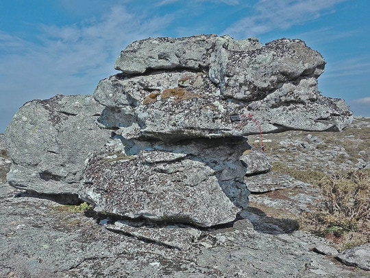 Associados à pseudoestratificação, ocorrem neste MNL alguns blocos graníticos mais salientes na sua parte superior do que na sua base (Fig. 4.15). Estas geoformas, chamadas de blocos em pedestal, têm origem nas meteorização e erosão mais intensas na parte inferior dos blocos pseudoestratificados.