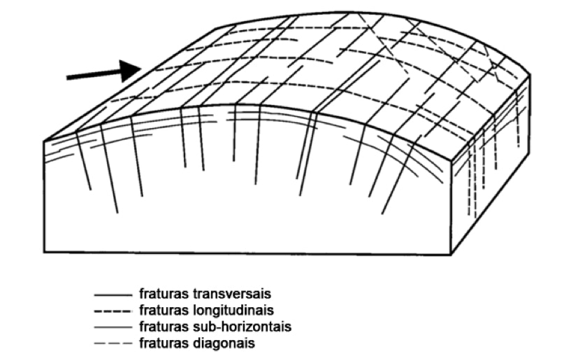 A pseudoestratificação está associada ao alívio de carga, à medida que os granitos se “aproximam” da superfície. O espaçamento das fraturas tende a aumentar com a profundidade à medida que a pressão aumenta.