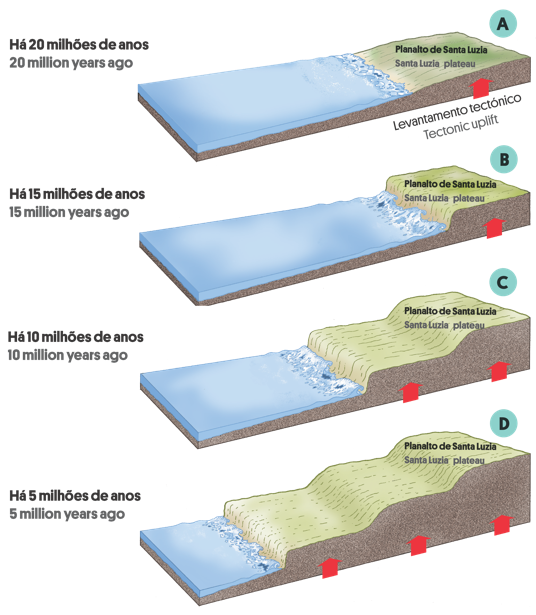 Figura 6.3. As cascatas do Poço Negro localizam-se no declive entre as superfícies mais elevadas (à direita) e a plataforma litoral (ao centro).
